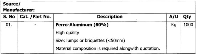 补充说明 采购1000kg铁铝合金
