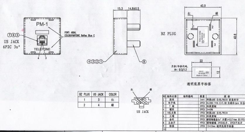 实单采购巴西规格电话转接头850000台,具体要求请参照图纸,请生产商报价和确认交期!