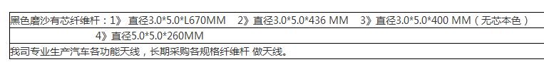 我公司需要采购汽车天线用纤维杆10000条,规格型号详见图片,长期采购,请报 ,欢迎报价!