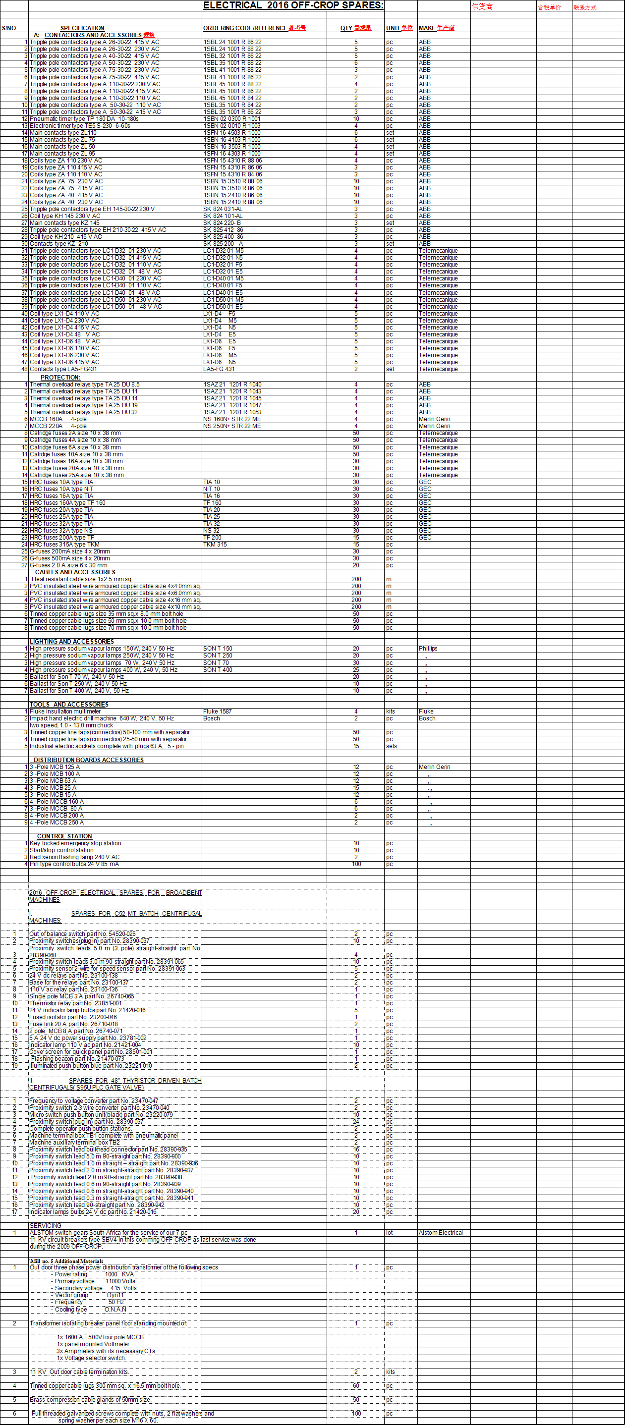 补充说明 需要购买一下ABB接触器,详情请看附件,如果能提供其他如:施奈德和GEC等电子产品,都可以接受,需要知道含税单价,以便能及时确认成交。
