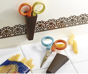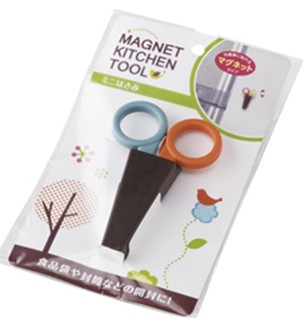裝入附有磁鐵的小盒子,可吸附在冰箱上,用來剪要開封的袋子