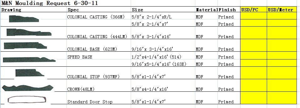 购密度板线条,规格比较特殊: