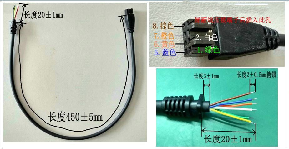 数据线线长450mm500条、1000mm500条,线均需带屏蔽层,28号线六芯线。