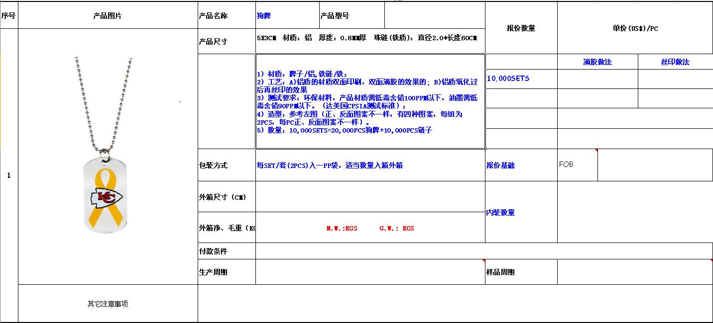 我公司现采购20000pcs狗吊牌,详情见图,收货地在广东惠州市惠城区,请报FOB价,欢迎报价!