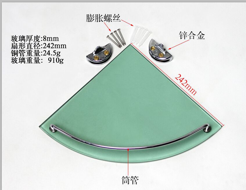 10,000个 | 我公司采购扇形玻璃置物架,采购量为10000个,要求:玻璃是钢化玻璃,玻璃夹是锌合金的,管子是铜管玻璃厚度8mm,详见附图。供应商所在地为杭州,宁波,绍兴。收货地为浙江省绍兴市上虞区,报价请报含税价。欢迎报价。 |