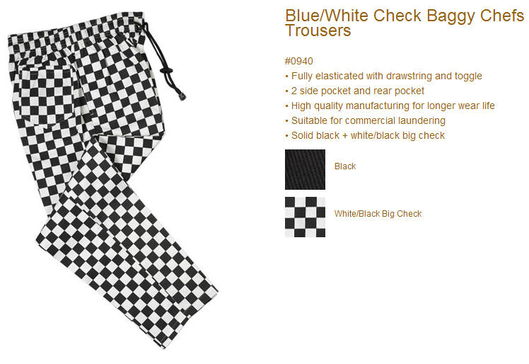 黑/黑白格子厨师裤