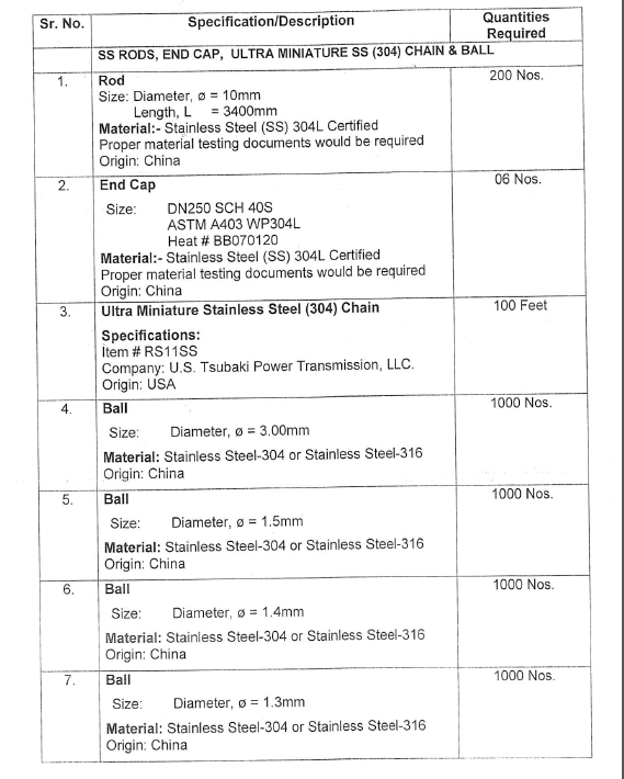 采购不锈钢棒、超微型链和球等