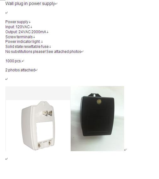 我公司需要采购墙上的开关电源1000个,24V 220V,详见产品样图,需要与图片完全一致,请报 ,欢迎报价!