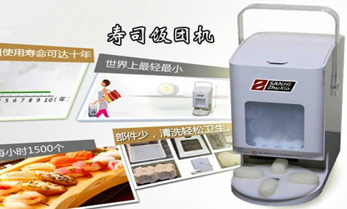 | 补充说明 | 产品简介:1、轻便、省空间; 2、采用新开发的特殊成形模型,口感和成品形状俱佳; 3、自动送饭功能; 4、饭团硬度调整功能; 4、自动停止功能; 5、操作简单,零部件数量少,易维护,易清洁。 特点: 1.每小时可以制作1200~1500个饭团; 2.自动传送米饭系统… ; 3.自动调整功能使制作出的饭团外形整齐美观; 4.专利成型工艺; 5.饭团硬度可调整; 6.当旋转托盘上有6个饭团时,机器会自动停止运作; 7.操作简便,易使用; |