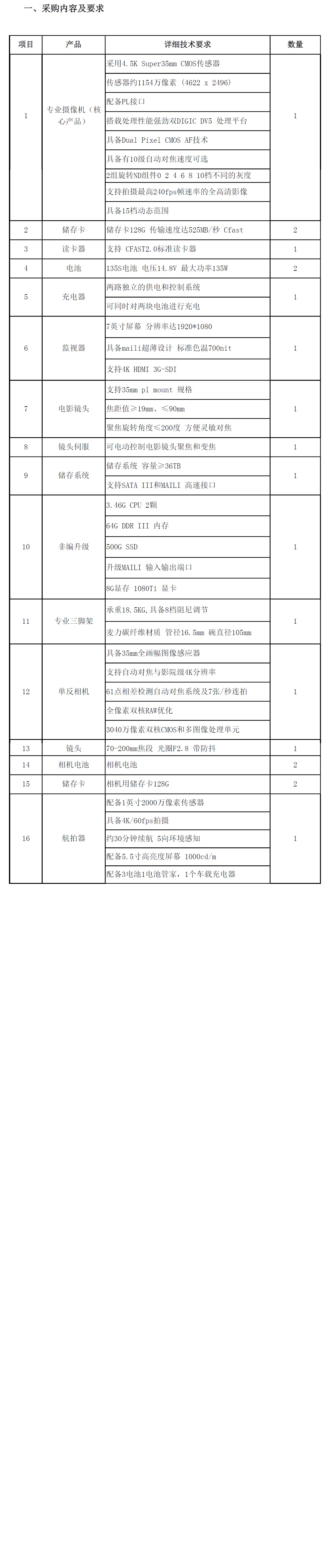 专业相机采购一批
