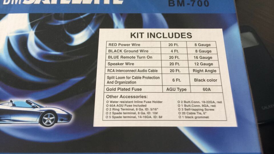 我公司需采购2000套汽车套线,要带盒子包装,做客户LOGO ,质量要求好的。其中红色电源线:20英尺 8G , 黑色接地线:4英尺 8G , 蓝色远程控制线 20英尺 16G , 音响线 20英尺 12G , RCA 网络音频线 20英尺 直角 ,软管 :6英尺 黑色 ,保险胆 金色 60A ,小配件,产品详见样图,收货地在广州市荔湾区,请报 ,欢迎报价!