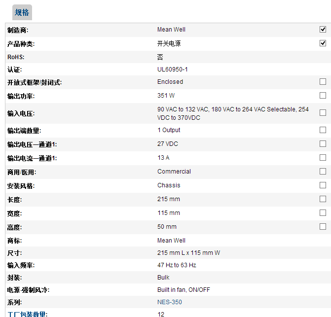 100个 | 709-NES350-27 开关电源 351W 27V 13A |