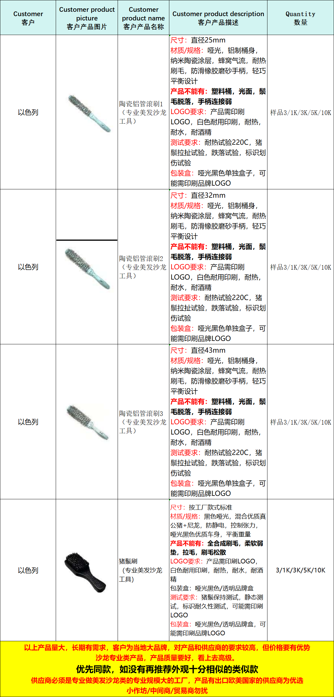求购:美发沙龙专业梳子