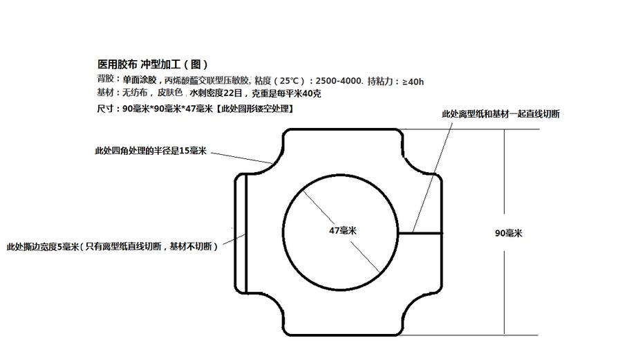 无纺布胶带模切冲型 100,000 我公司现欲采购无纺布胶带模切冲型100000片,水刺无纺布22目,单面涂胶。