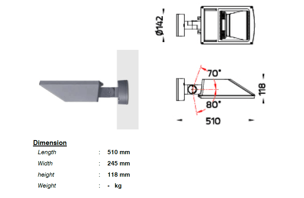 1。60W,可调角度,IP65防护等级。详见规格书