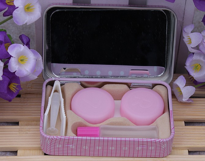 1,双联盒一个 / 2,小镊子一个 / 3,配戴棒一个 / 4,药水盒一瓶 / 盒盖内侧为小镜子