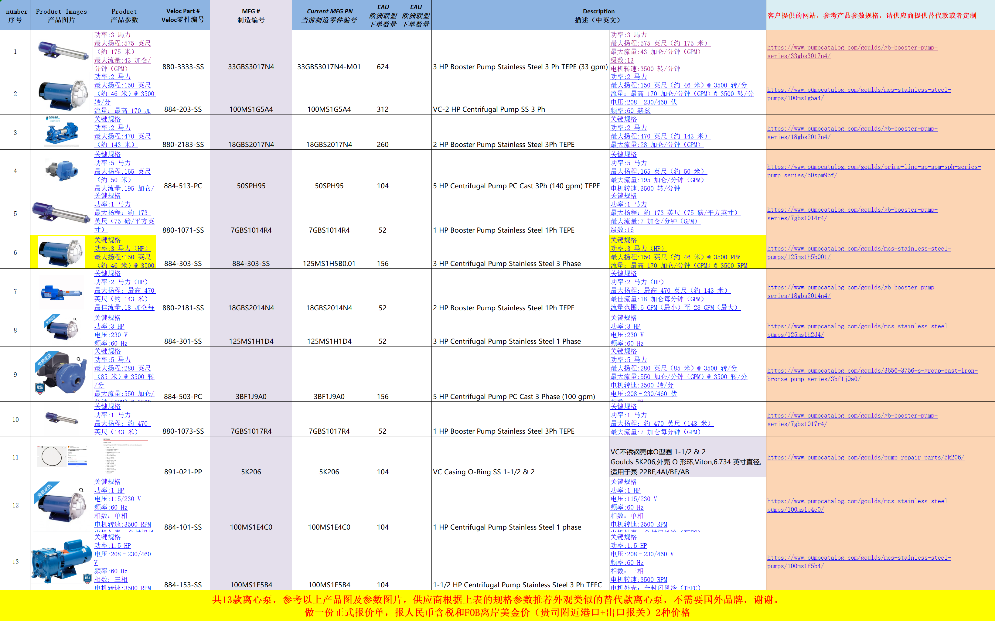 求购:13款卧式离心泵