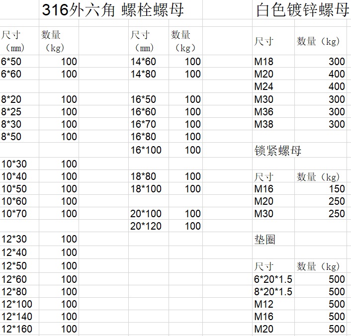 316螺栓螺母询价