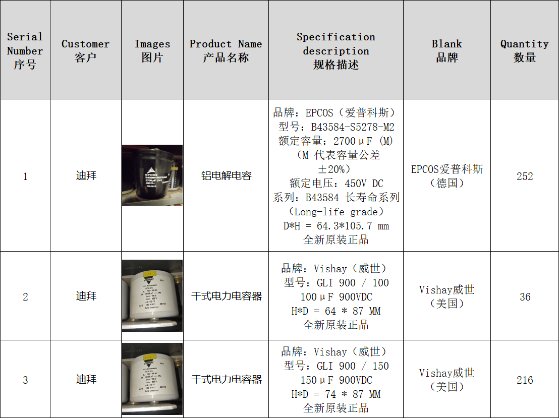 求购:EPCOS和Vishay品牌电容器