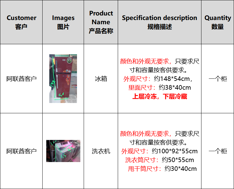 洗衣机和冰箱,出口阿联酋