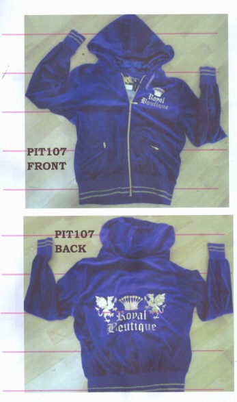 求购一批天鹅绒套装现货。出口至墨西哥市场,面料不限。夹克有帽套里,有绣花,橡筋裤头样式。数量15000套。